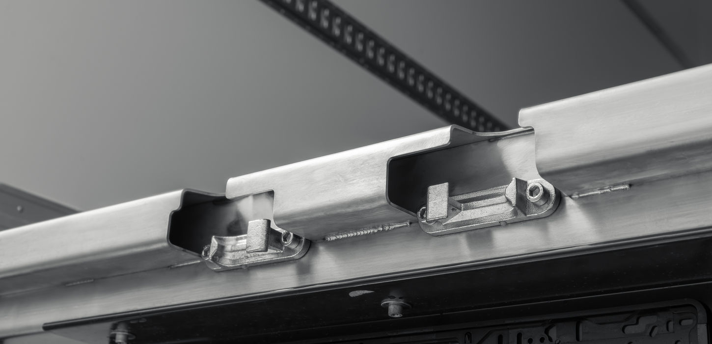 As standard, the body features 265 mm high aluminium L-form kickplates bonded and riveted to the front, side, and rear interior walls to protect it from pallet impacts and cargo-related wear. This reinforcement extends the lifespan of the structure in daily intensive use. We also offer additional plates for extra protection.